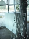 A4サイズのカタログやパンフレットを7段に収納できる折りたたみ式のパンフレットスタンドシングル。下にはストックが置けるラックがあります。