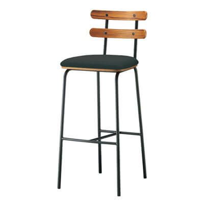 木材の質感を楽しむ、木金混合チェア。豊かな木目の表情とその形状により、賑やかで温かみのある空間を演出します。チェアの張地には、消毒に使用される次亜塩素酸の効果により、色が抜ける現象を軽減する加工が施されています。落ち着く休憩スペース等様々なシーンにご利用いただけます。ハイテーブルやカウンターと合わせて使えるハイスツールタイプ。
