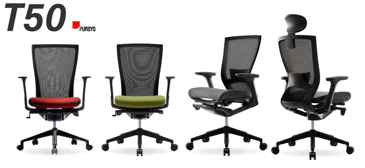 FURSYS(ファシス)のT50シリーズは、スタイリッシュなデザインの高機能デスクチェア。長時間のデスクワークでも疲れにくいため、オフィスのデスクチェアとしてはもちろん、ミーティングエリアやコワーキングスペース、在宅テレワークにもご利用いただけます。