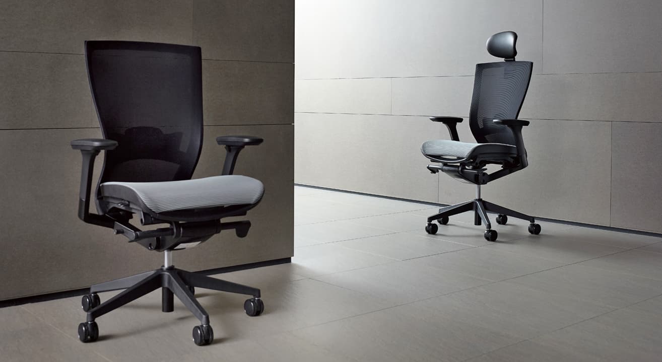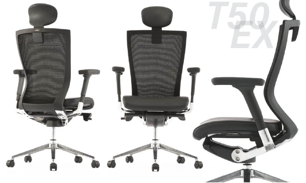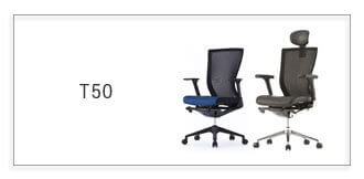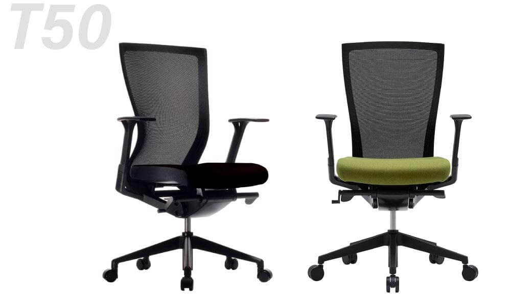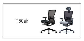 背面とシートにエアスキンメッシュを採用したT50airシリーズ。可動アームレストを標準装備、ヘッドレスト・ランバーサポート付きもお選びいただけます。