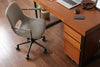 コンパクトなサイズ感のデスクチェアーで空間を圧迫しません。昇降式であらゆるデスクの高さに対応可能です。キャスター付きで移動も楽です。 *組立品