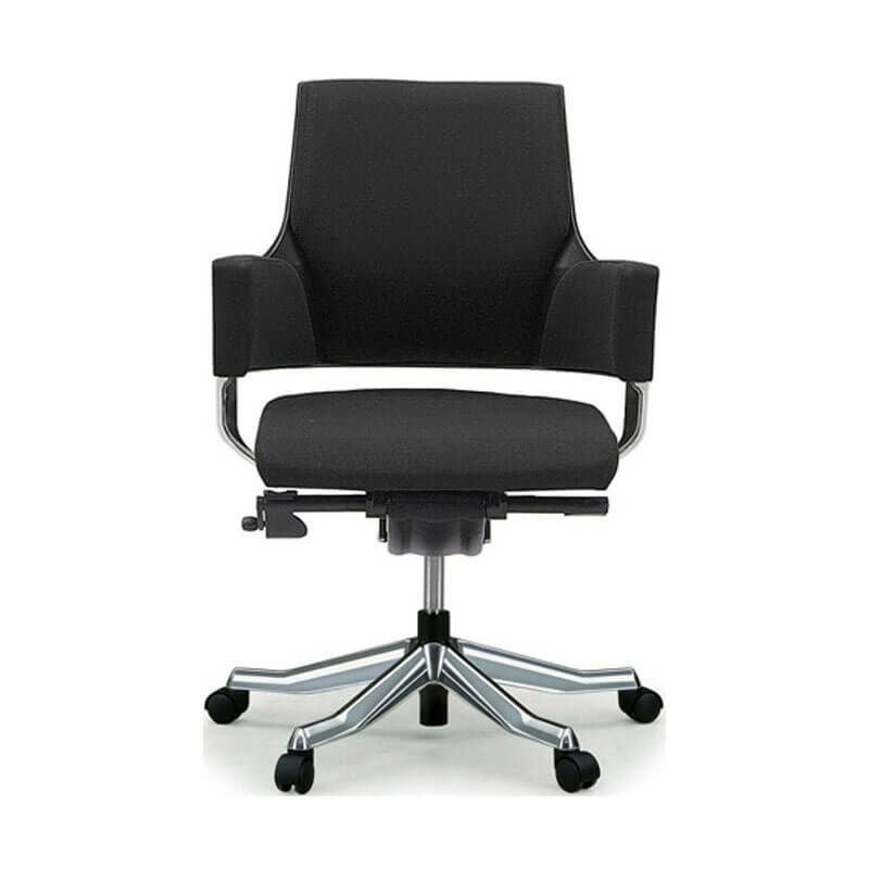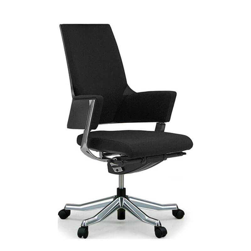 機能的な跳ね上げ式アームのマネジメントチェア。立ち座りがしやすく、ゆったりとした座り心地で役員席等にも適しています。
