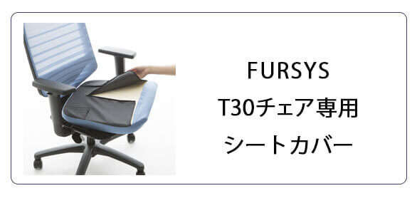 FURSYSのオフィスチェアT30シリーズ。背もたれは密度に変化をつけたグラデーションメッシュで体圧に合わせて背中をしっかりと支えます。座面は厚みのあるクッションで座り心地抜群、マジックテープで簡単に脱着でき、カバーを取り外して洗えます。背座シンクロロッキング機構、背角度固定機能あり。