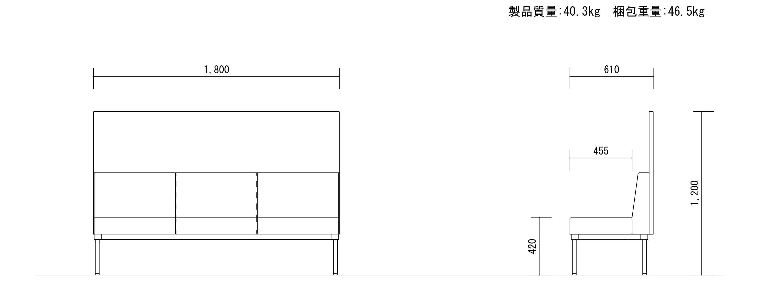 size (サイズ) :W1800xD610xH1200(SH420)mm