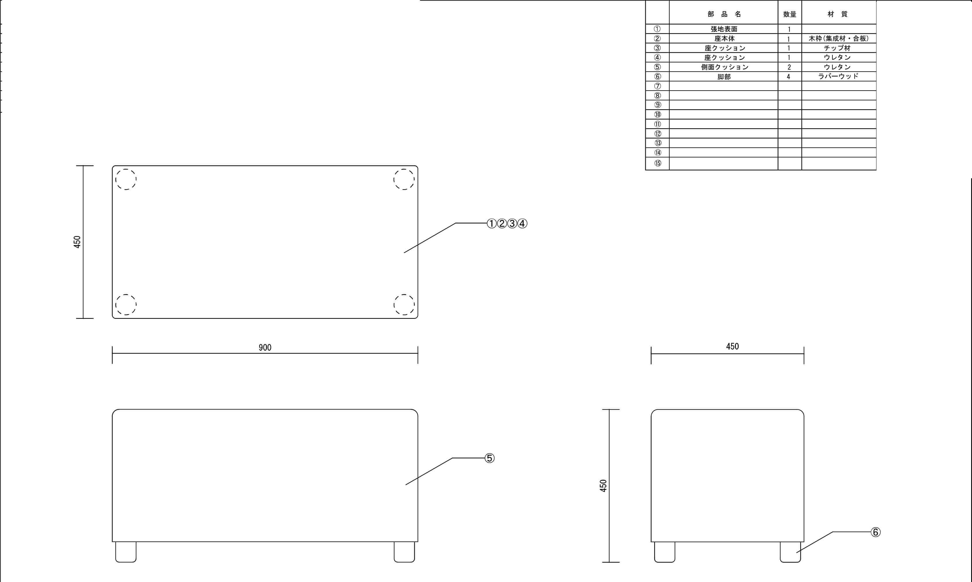 material (素材) : 本体:木枠・ウレタンフォーム 脚部:60φラバーウッドクリア塗装