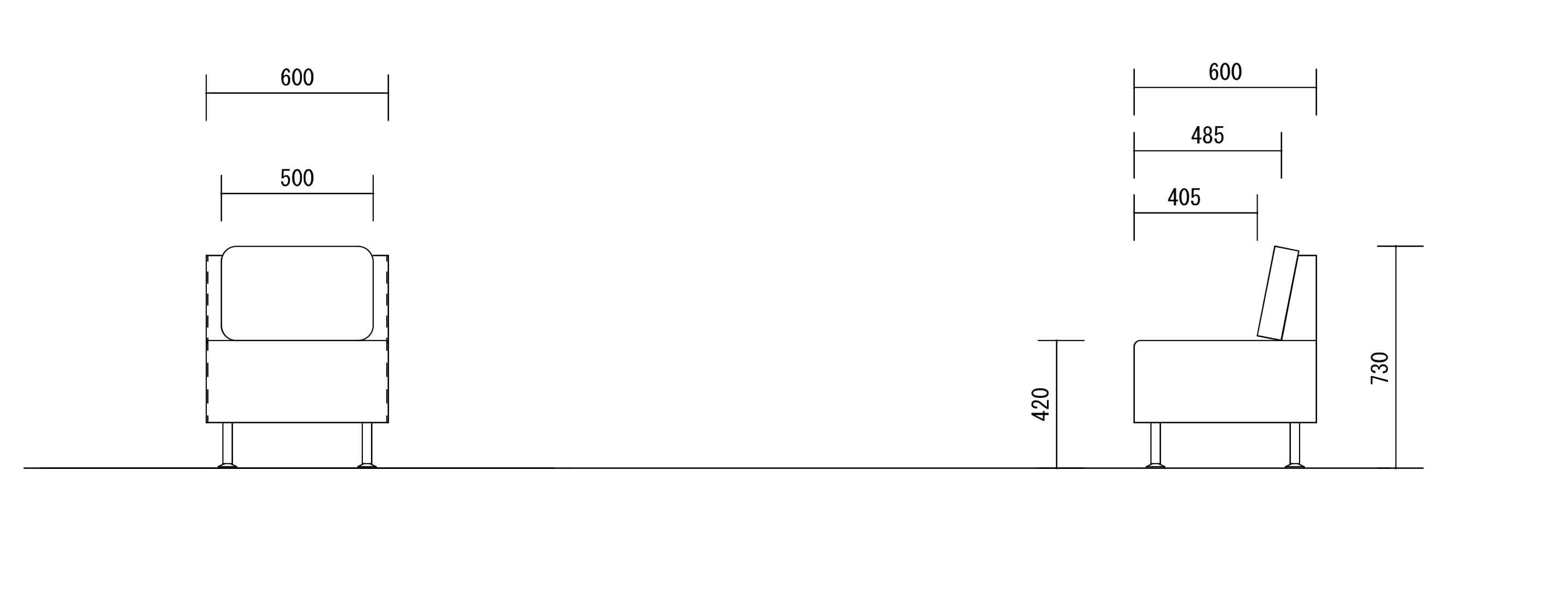 ボリューム感ある背が特徴。張材コーディネートでクリニックの待合やオフィスラウンジなど、使用シーンは様々です。テーブルとの組み合わせで、ソロワークチェアとしても使用可能です。背はクッション付きタイプなので、よりかかった際、背中をほどよくホールドします。