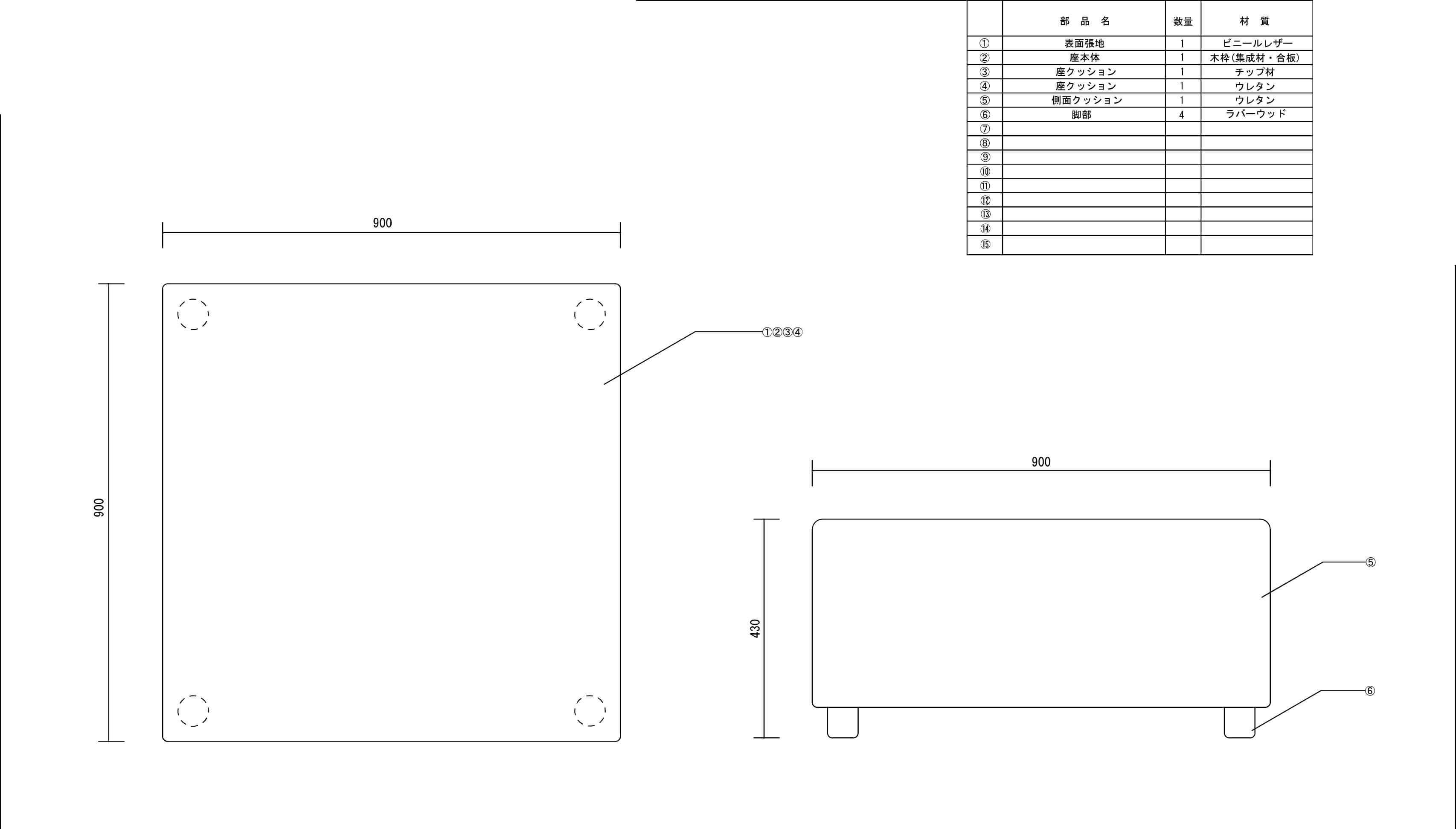 material (素材) : 本体:木枠・ウレタンフォーム 脚部:60φラバーウッドクリア塗装