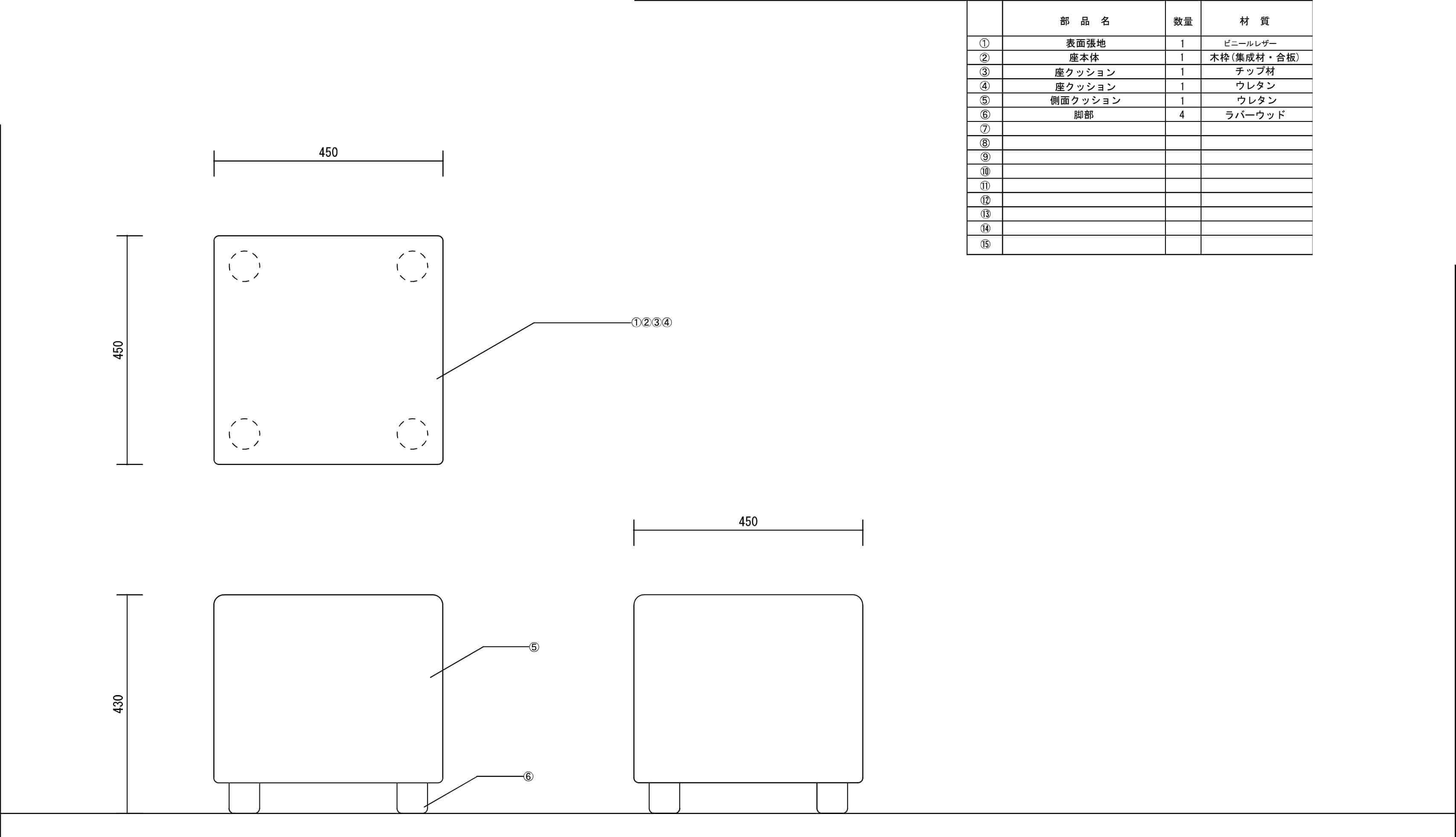 material (素材) : 本体:木枠・ウレタンフォーム 脚部:60φラバーウッドクリア塗装