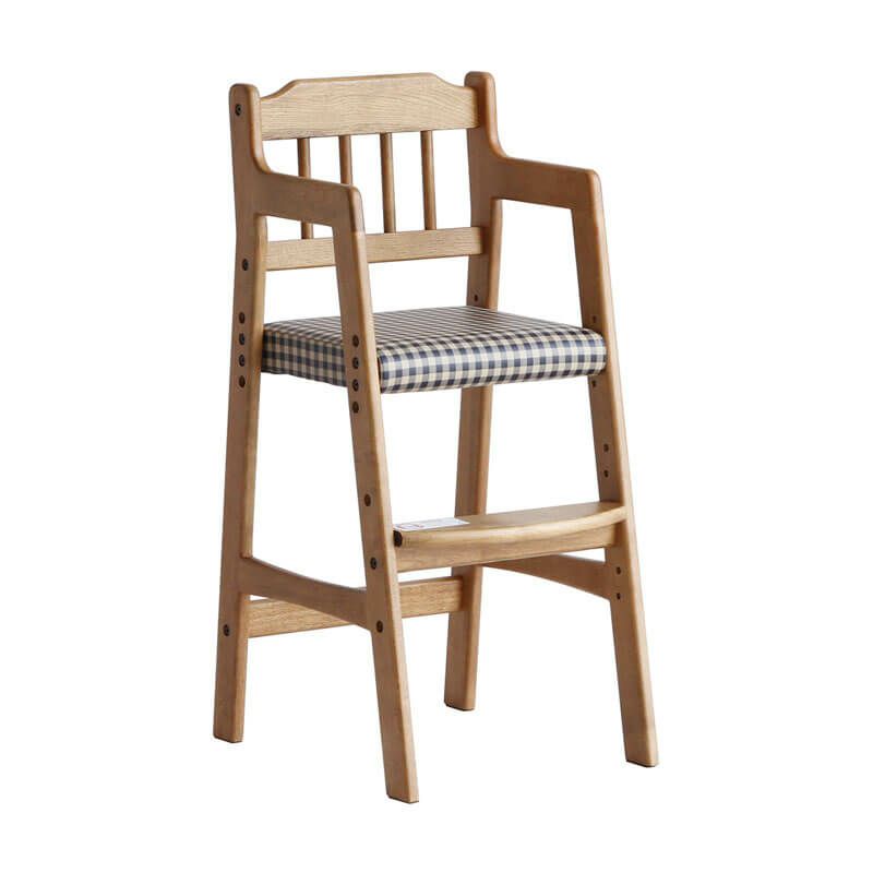 ダイニングでの使用にぴったりの子供用ハイチェア。座面と足置の高さ調節ができ、お子様の成長やセットするテーブルに合わせてご使用頂けます。座面は食べ物をこぼしてもすぐに拭けば落ち易いPVC素材で、子供用の家具にピッタリです。