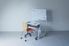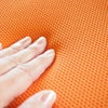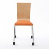 座面パッドでソフトな座り心地のキャスター付きプライウッドチェア。オレンジの座面が空間を明るくします。クッションの厚みは約10mmです。4脚までスタッキングできます。