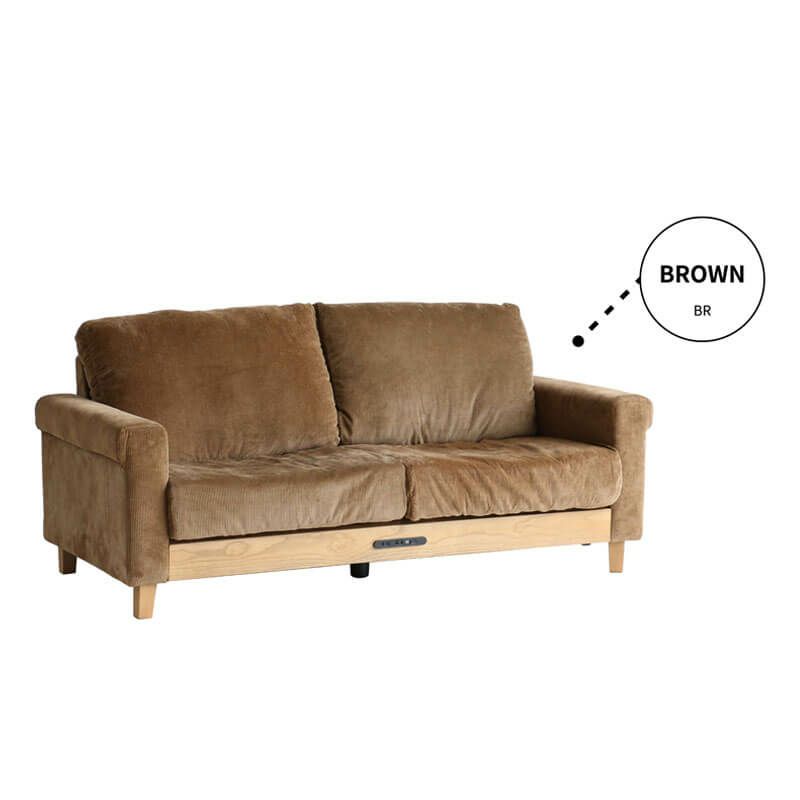 USB&電源コンセント付き!ゆったり座れるアメリカンテイストの2人掛けコーデュロイソファ。床からソファの底面までの高さは10cm。一般的なお掃除ロボットが入れる高さで、掃除も可能です。また脚を取り外せばローソファとしても使えます。