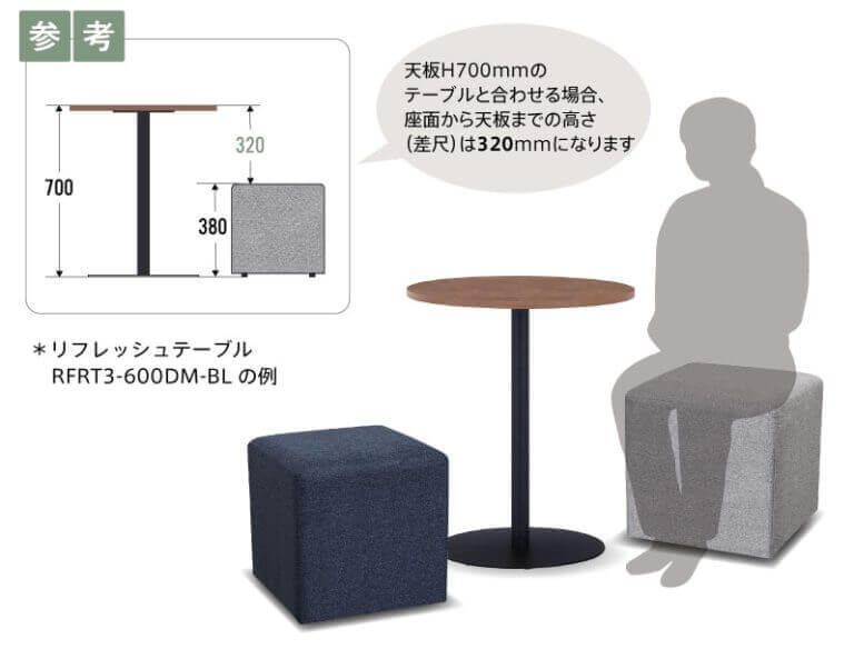 キューブソファは、休憩室やリフレッシュスペースのカフェコーナーにもおすすめです。座面高(SH)は380mmで一般的なチェアよりも低めになりますので、用途によってはあらかじめ組み合わせるテーブルとの差尺をご確認ください。 |