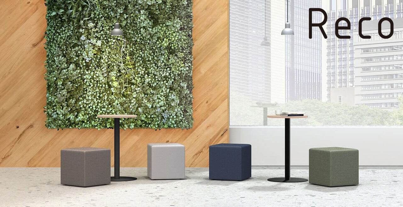 Reco(リコ)キューブソファは、エントランスの待合スペースからミーティングシーン、リフレッシュスペースまで、多目的に使えるキューブ型の張りぐるみスツールです。