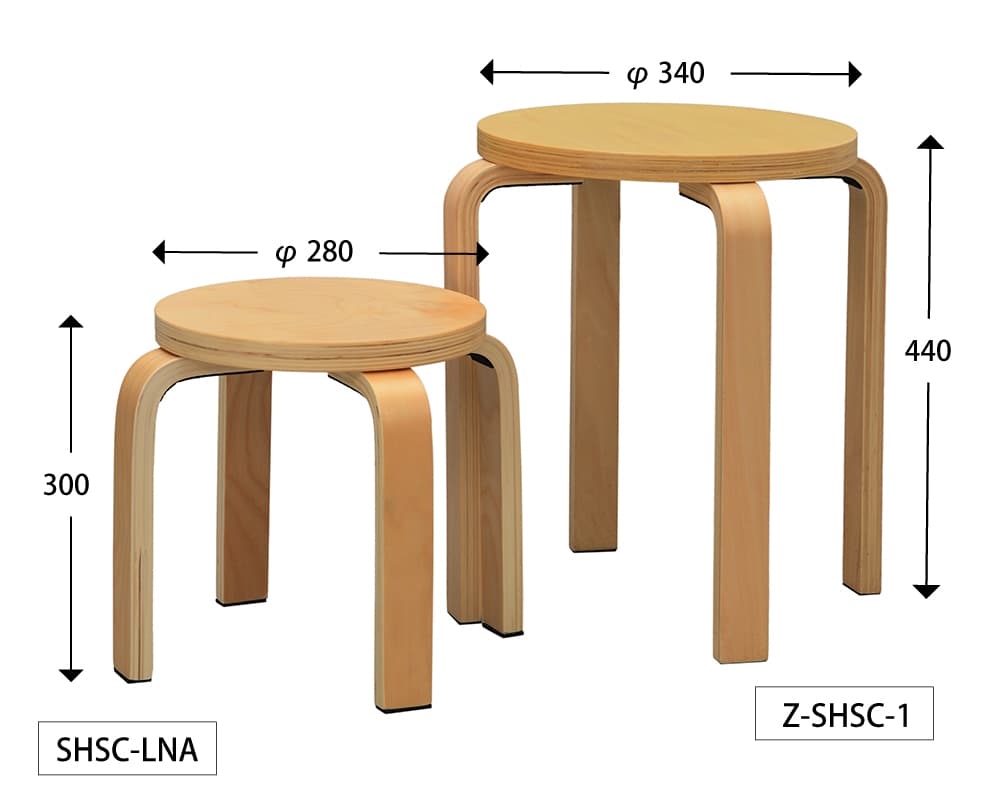 ラウンドスツールは、一般的な座面高440mmのほか、ナチュラルのみコンパクトなロータイプがあります。 |
