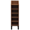 1列6段で収納するミーツシリーズのシューズラック。落ち着きのあるウォルナットの本体表面はメラミン樹脂化粧仕上げで汚れにくく傷がつきにくい仕様です。安定感のあるスチール脚で設置場所の清掃もしやすく、玄関周りを清潔に保てます。棚板はすべて固定式、最上段も使用可能で、高さのある靴やブーツ等を上に置くなど使い分けができます。 *壁面設置でご使用ください