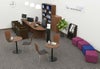 カフェコーナーや休憩室等に適したラウンド天板の一本脚テーブル。直径60cmのコンパクトサイズで限られたスペースにたくさん置けます。脚部は黒マット仕上げでスタイリッシュ。リフレッシュスペースはもちろん、エントランスや商談スペース、ロビー等でも活躍します。 *RFRT3-600DM-BLのメラミン変更後継品です。ウォルナットAからウォルナットGに変更。