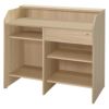 多種類決済に対応できるテンポシリーズのレジカウンターW1100。本体上部には小天板がありキャッシュレス決済の端末やQRパネル等を設置できます。(小天板は内・外どちらの向きにも取付可能。)正面には手荷物台を備えお客様の動作にも配慮した設計。PCやレジスター等を置けるスタッフ側の天板の下には収納スペースも充実しており、鍵付き引出しと固定棚2枚に加え64mmピッチでお好みの高さに設置できる可動棚板が2枚付属。レジ周りの備品から機材まで効率よく収納できます。天板左右と各棚板の片隅には切り欠きがあり配線対応。レジカウンター単体での使用はもちろんのこと、テンポシリーズの他のカウンターとコーディネートしてレイアウトできます。