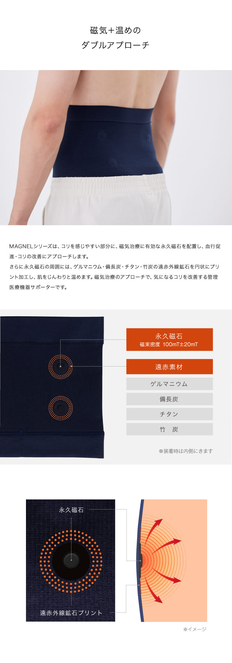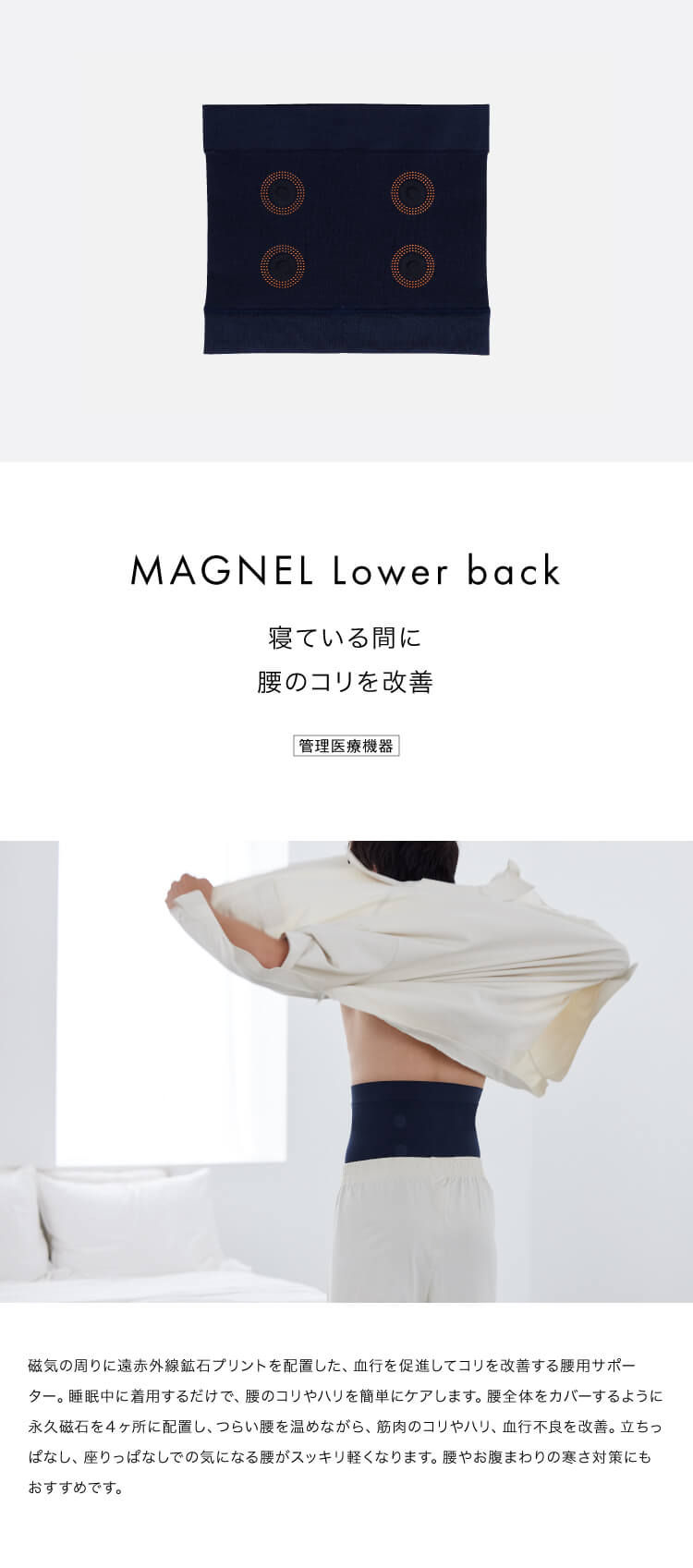 MAGNEL(マグネル)シリーズは、就寝時間をケアタイムに変える、「ナイトリカバ リー」発想の磁気・温活サポーターのシリーズです。