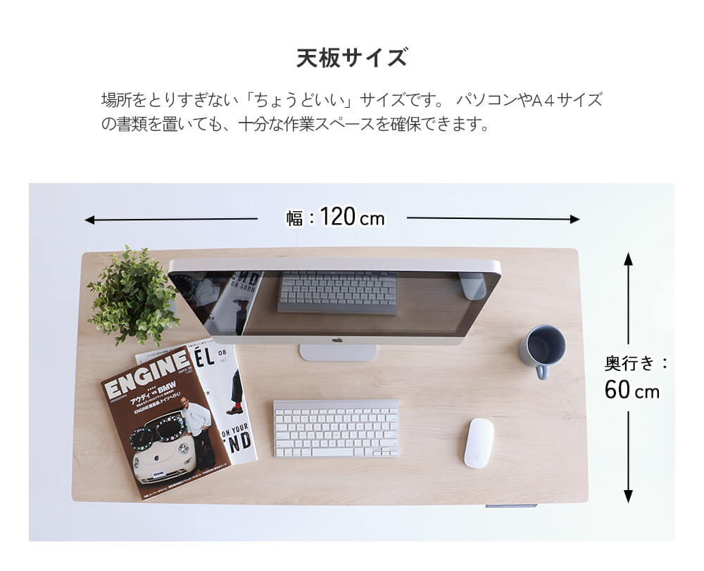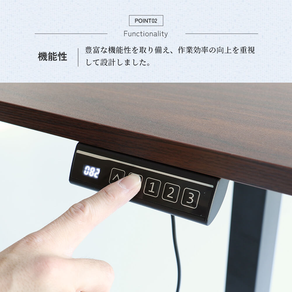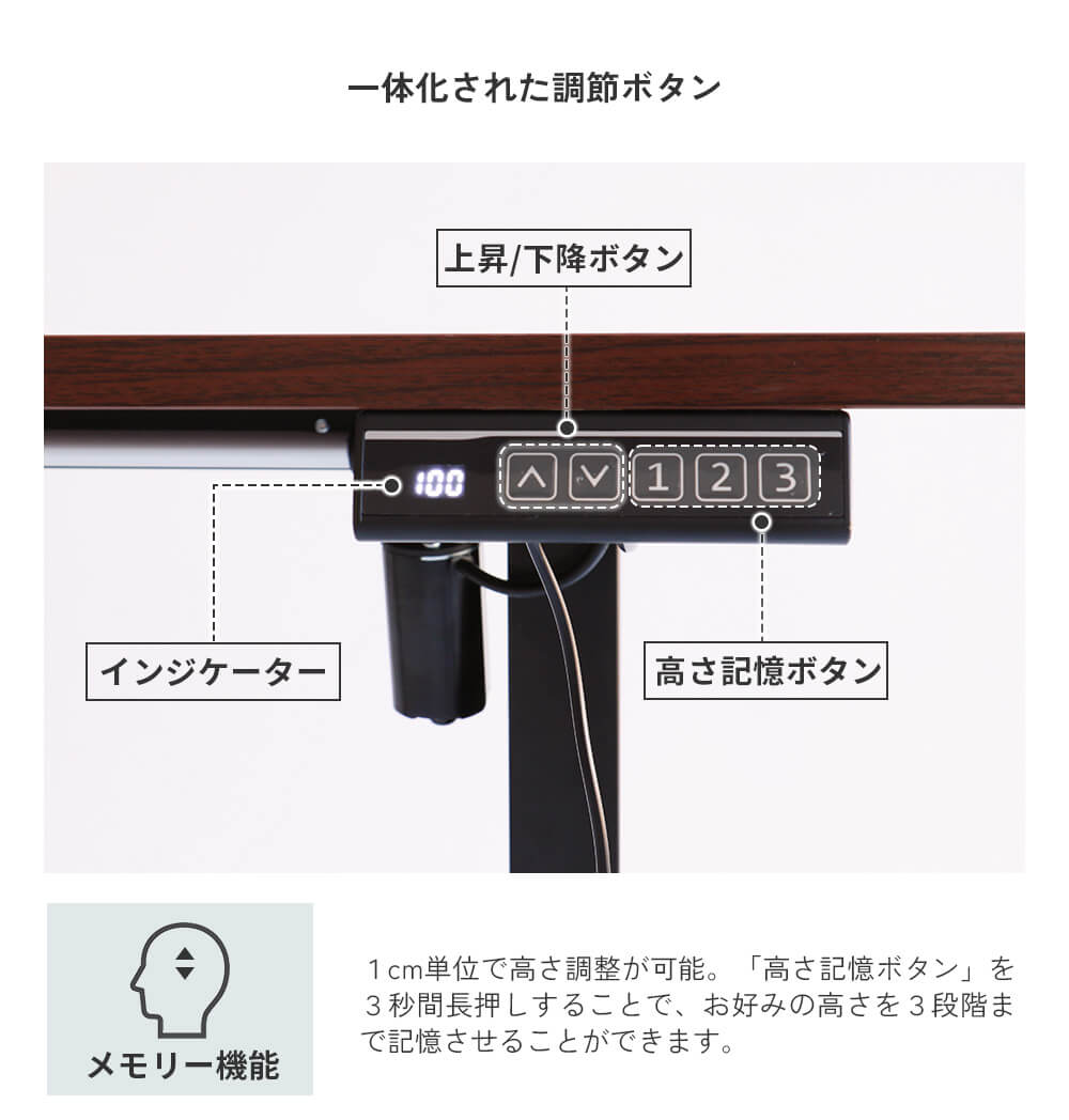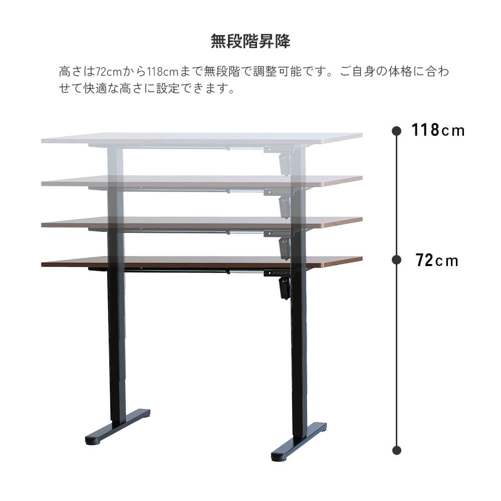 高さは72cmから118cmまで無段階で調整可能な電動昇降デスク