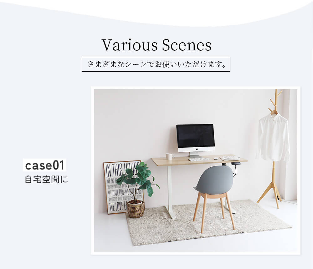 暮らしにとけこむミニマルな電動式の昇降デスク。