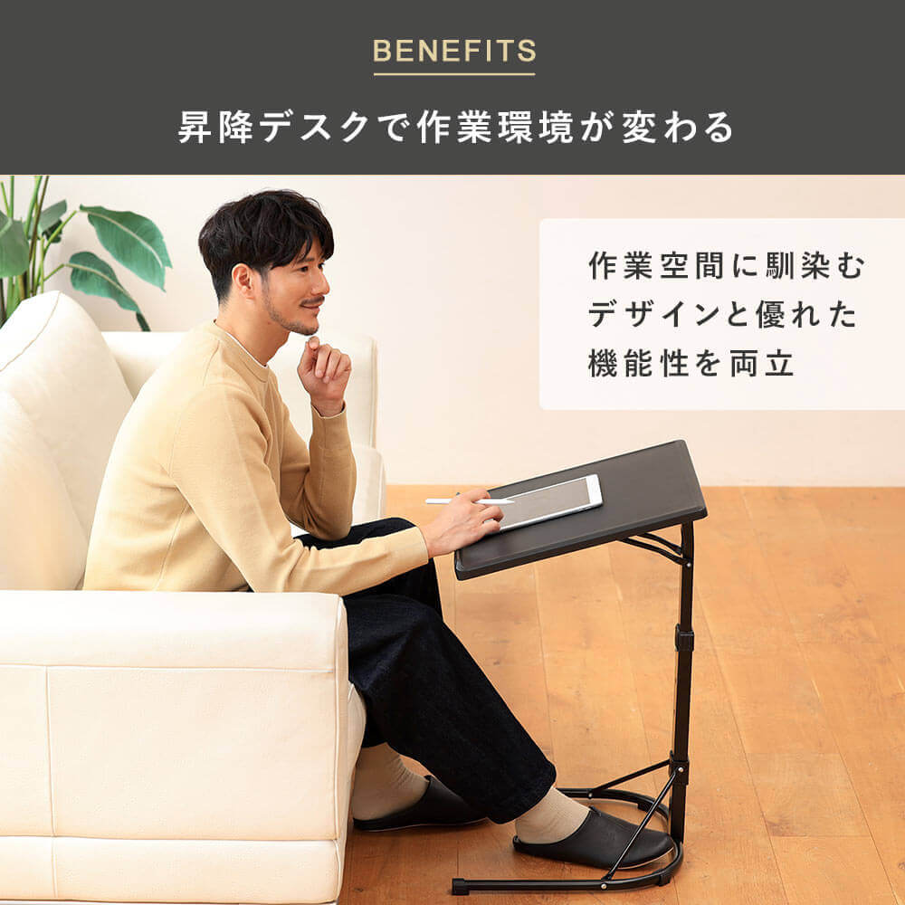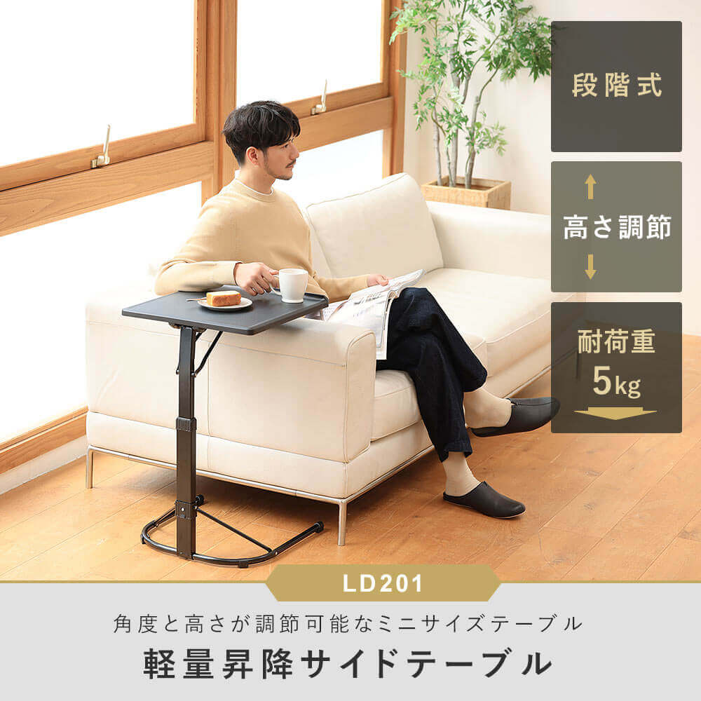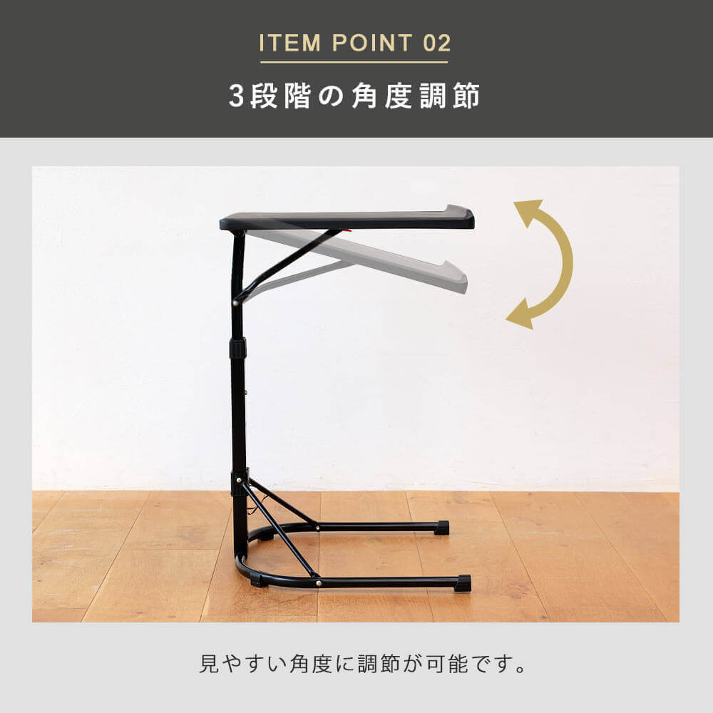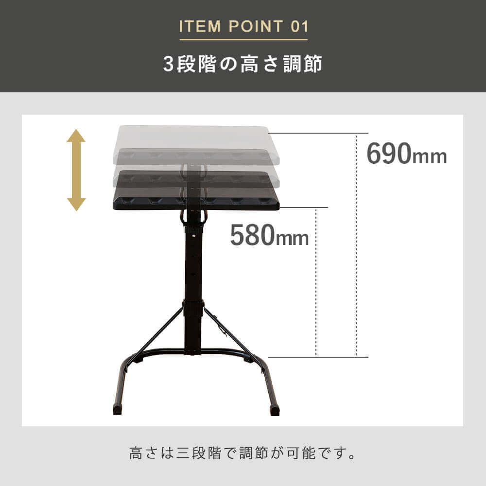 手動式3段階調節、組み立て不要ですぐに使える手動式ミニ昇降テーブル。折りたたんで収納可能。