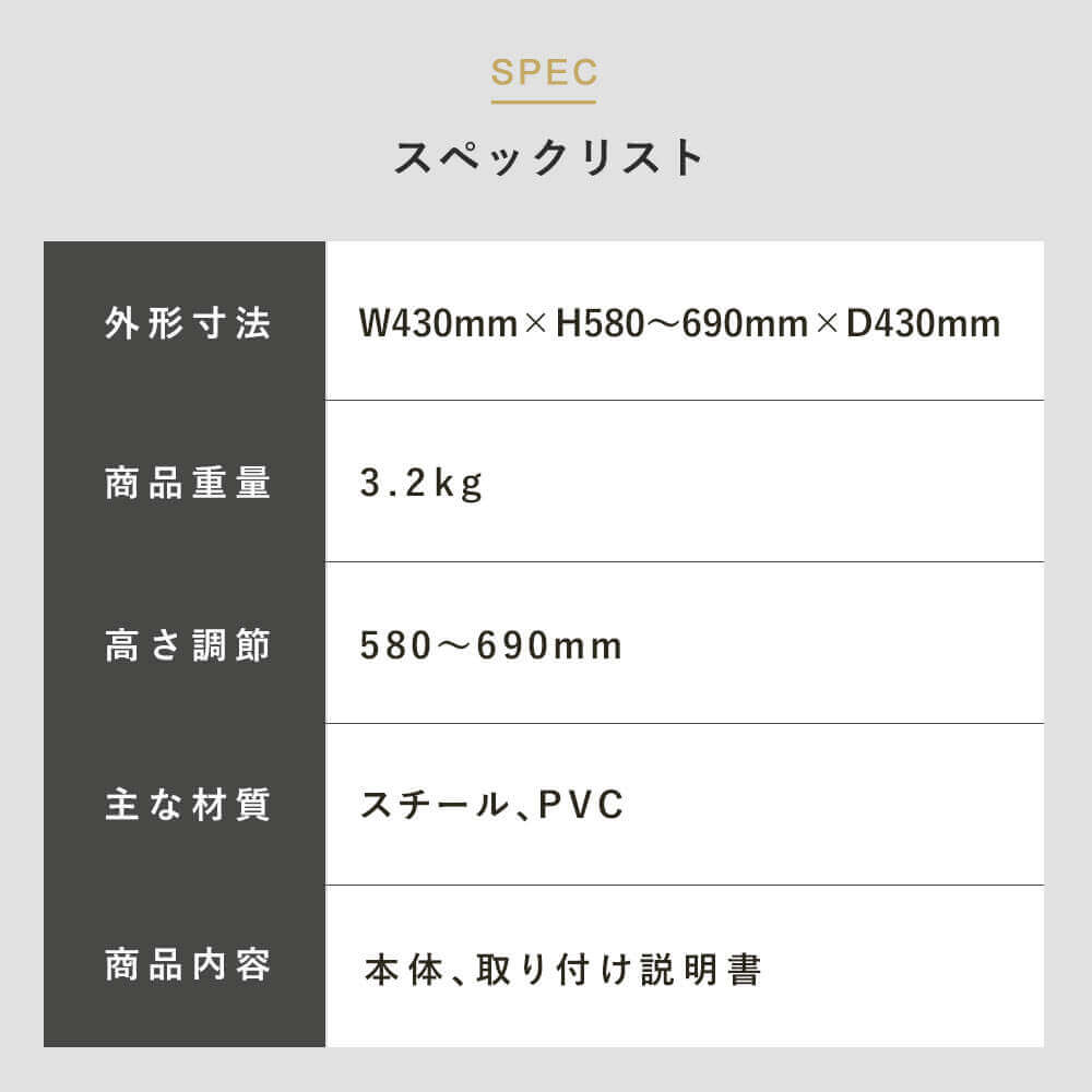 サイズ:W430×D430×H580~690mm