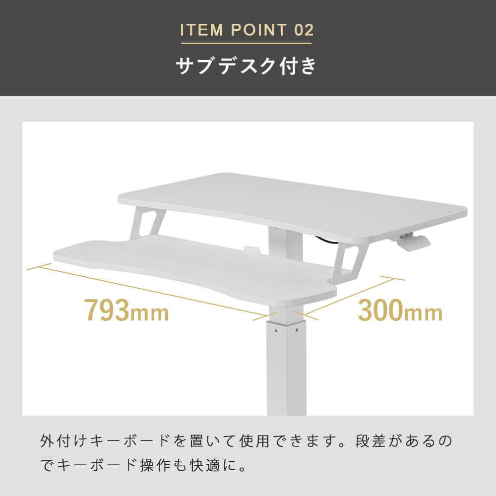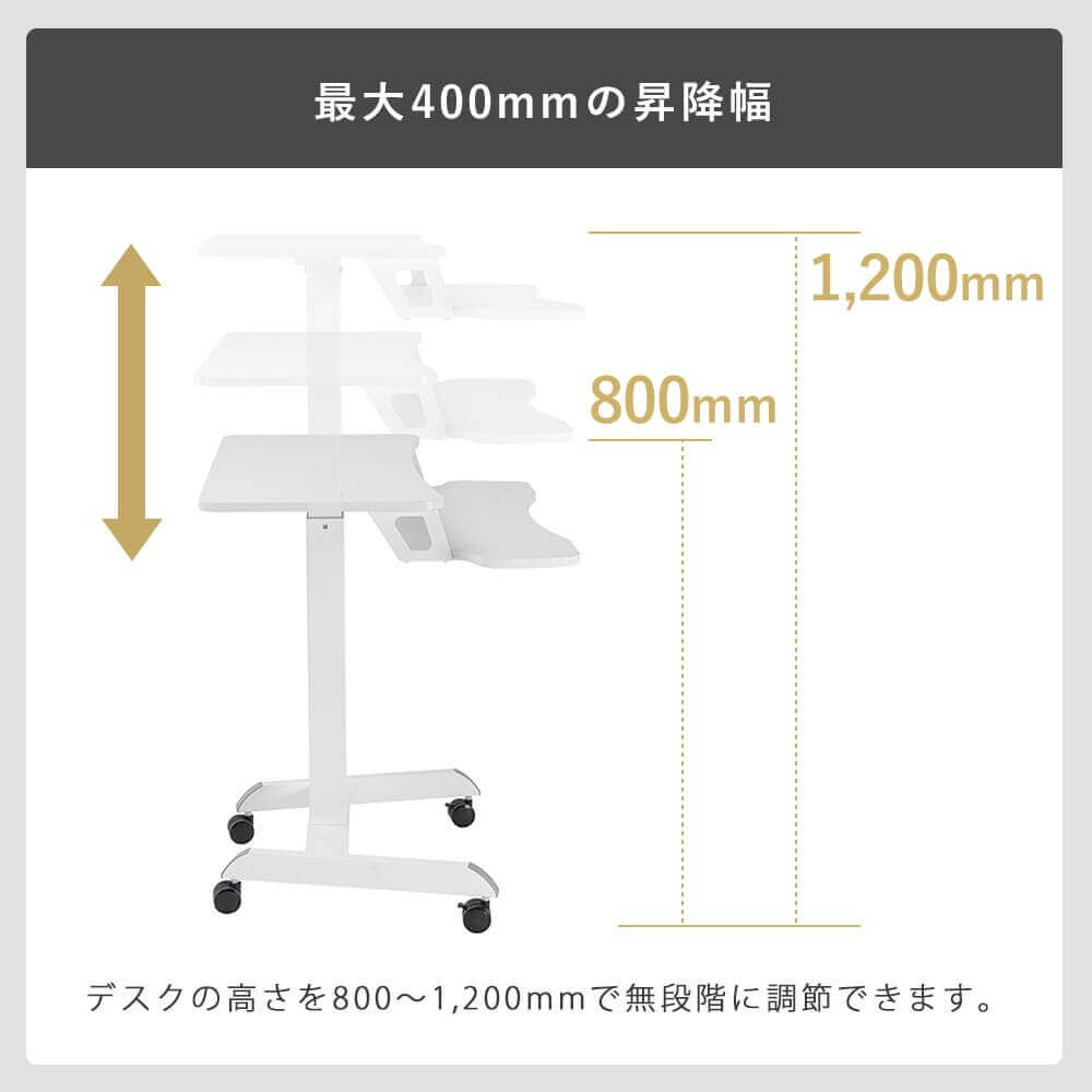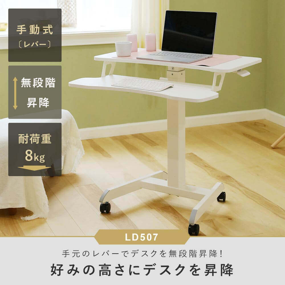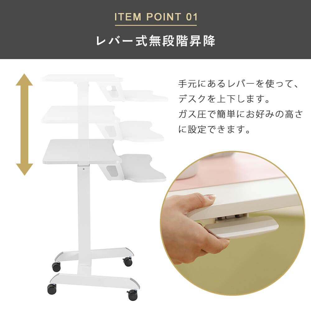 レバー式高さ調節、ちょうどいいサイズのミニデスク段違いタイプ。