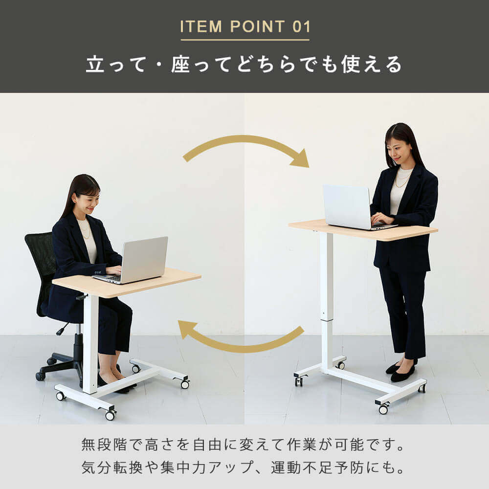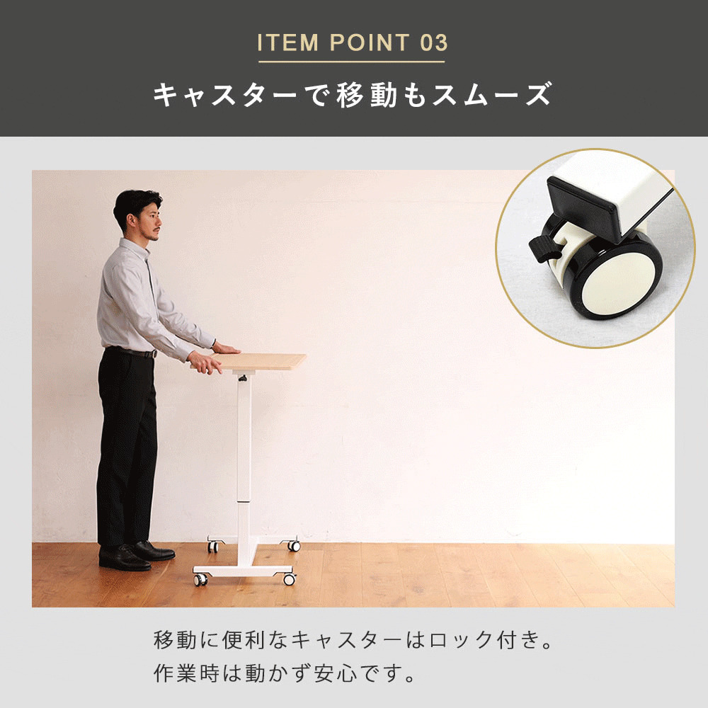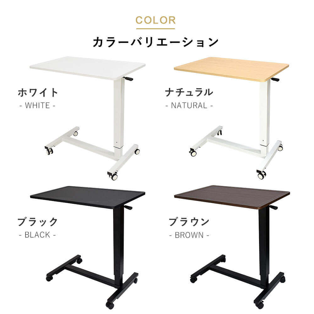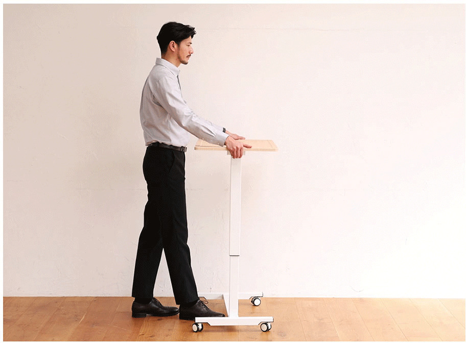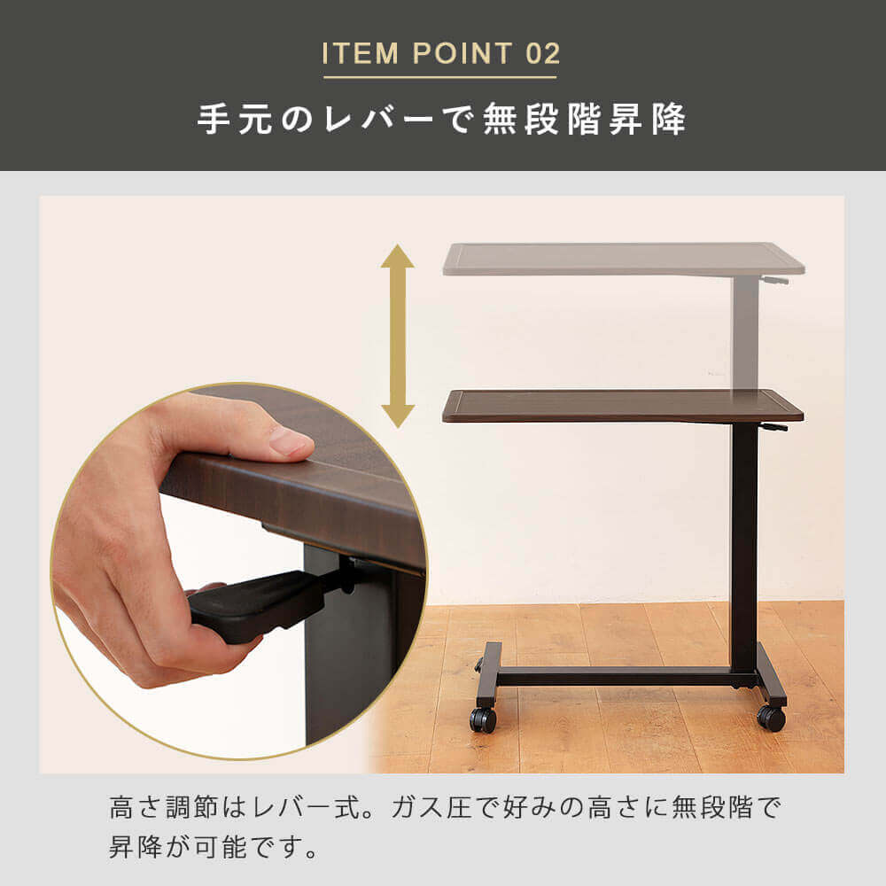 レバー式でさっと昇降可能。片持ちタイプでベッドサイドやソファーなどくつろぐシーンで活躍 。