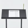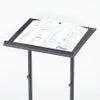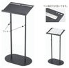 メニュー置き、ウェイティングボード、掲示など、様々に活用できる1台3役のスチール記帳台A3サイズ。記帳台の角度は約15°で固定です。ボード面に用紙等を固定できるよう、マグネットバーが2本付属しています。ボード右端の3つのホールはペン立てとして、またペンを紐でつないでおく場合にも便利です。2本の脚部にはメニューなどが掛けられるフックがそれぞれについています。耐荷重:ボード面約2、フック1個あたり約1Kg