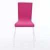 背座にウレタンクッション入りで座り心地のよいファブリックチェアピンク。明るいピンクにホワイトの脚部で華やかな印象。ミーティングスペース等にぴったり。4脚までスタッキング可能です。