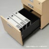 ノルム木製デスクシリーズの3段ワゴン。ノルムシリーズの引出し付きデスク下にも収納できるロータイプ。オールロック式で鍵が2本付属しています。最下段はフルオープン、上中段は1/3ほど残して引き出せなくなる仕様です。5つのキャスターのうち2つにはストッパーがついています。 *旧モデルより引出し内部のボックス、レールの仕様と外寸Hが605mmから595mmに変更になりました。鍵2本、スパナ付属。