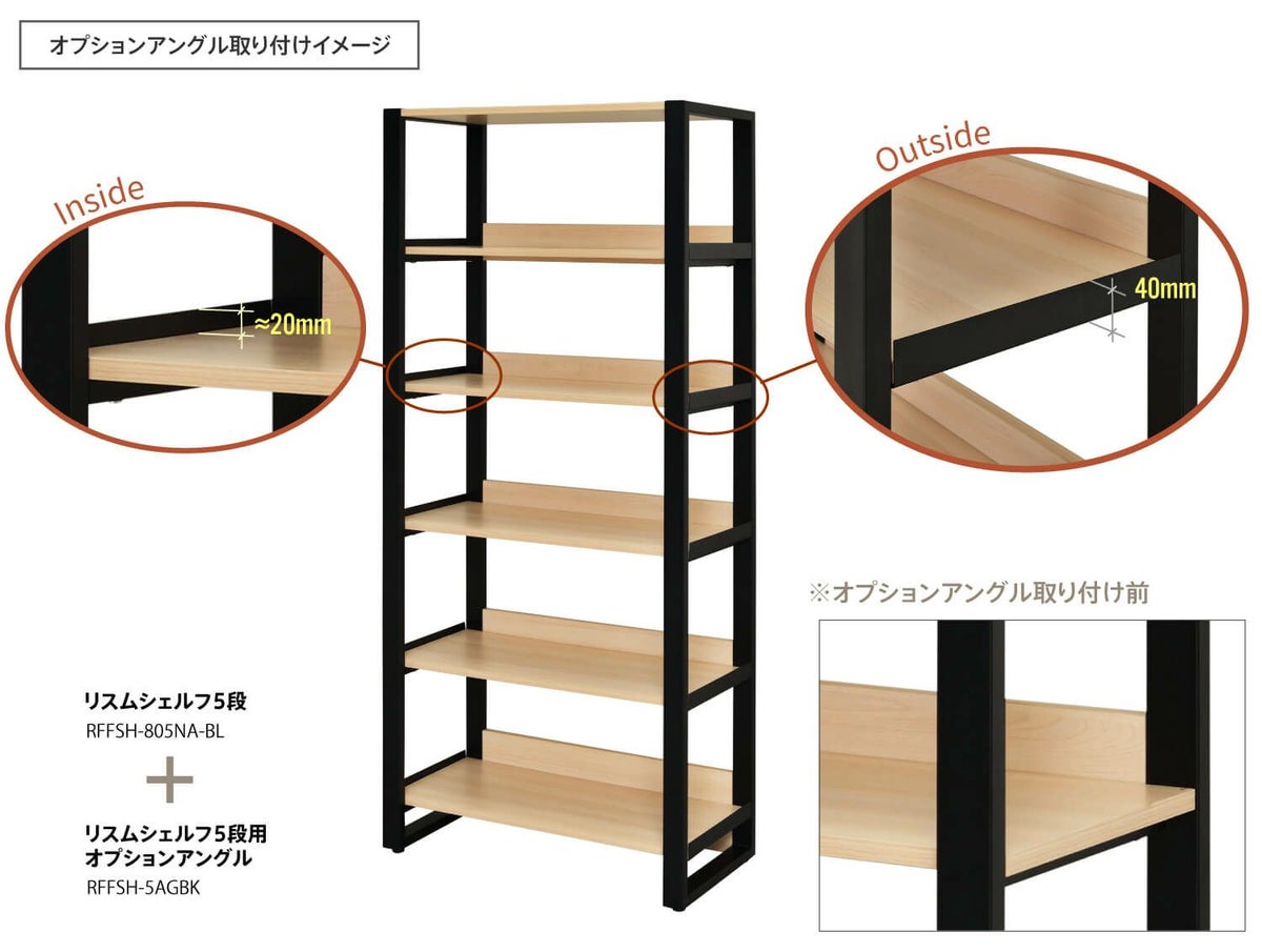 他の画像を見る リスムシェルフ5段用 【在庫限り】リスムシェルフ5段用 オプションアングル10個セットブラックRFFSH-5AGBK-10 在庫限り 通常販売価格 ¥ 9,460 のところ 価格 ¥ 4,700 税込 お気に入りに登録する