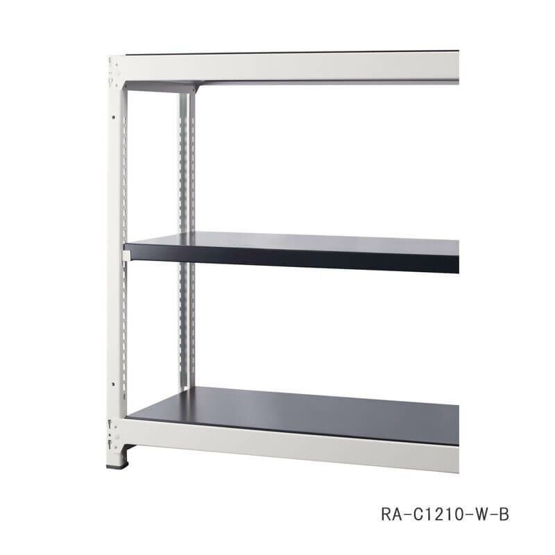 デザインにこだわったスチールラック増連セット。オールスチール製で1段あたり耐荷重200Kg(等分布)ボルトレスにより組立・分解も簡単。片側の支柱を利用し増連が可能。安全に配慮したコーナーキャップ付き。支柱2本・棚板3枚。