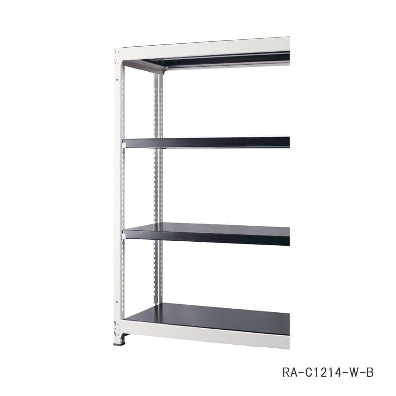 デザインにこだわったスチールラック増連セット。オールスチール製で1段あたり耐荷重200Kg(等分布)ボルトレスにより組立・分解も簡単。片側の支柱を利用し増連が可能。安全に配慮したコーナーキャップ付き。支柱2本・棚板4枚。