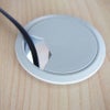 中央に配線穴があります。キャスターは4個すべてにストッパーがついています。移動時以外はキャスターのストッパーをロックしてご使用ください。
