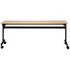 セミナールームや会議室、教室に欠かせないフォールディングテーブル。天板折りたたみ式でスタック収納が可能です。棚やフックを省いたシンプル構造、RFFT2より脚部間の幅を広げたことで下肢空間がゆったりしています。天板は四隅すべて丸角で、島型レイアウトの際には中央に配線逃し用の隙間ができます。また、丸角デザインによりカジュアルな印象で親しみのある空間を演出できます。別売のオプション幕板(RFFT3-OP-18NA)の取り付けが可能です。右側のレバーを押し上げながら、天板をゆっくり動かすことで簡単に折りたためます。キャスター4個にはすべてストッパー付き。会議室はもちろん、学習塾やセミナールーム、ワクチン接種会場など様々なエリアでご使用いただけます。耐荷重:天板20Kg 六角レンチ付属