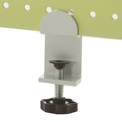 クランプ式でデスクにしっかり固定できるメタルデスクトップパネル。パネル面でマグネットを使用した掲示も可能です。
