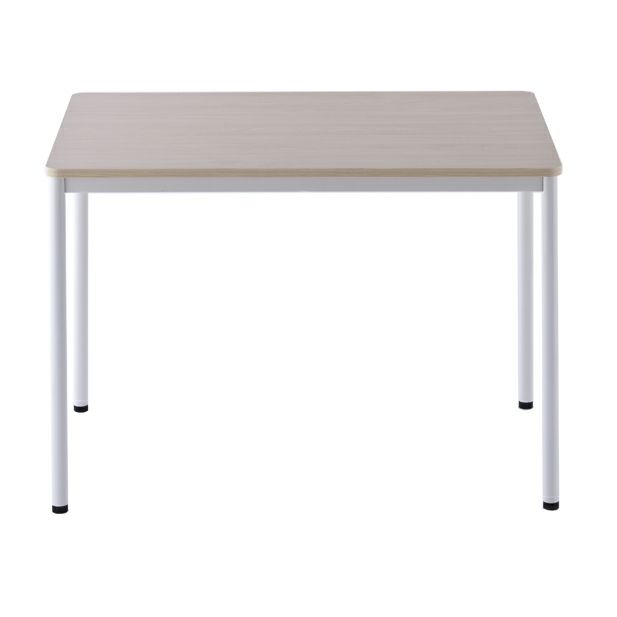 置き場所を選ばないシンプルテーブルW1000×D700、天板カラーはナチュラル、脚部はホワイトです。細身の脚部ですっきりしたデザイン、天板裏はフレーム構造で安定感があります。デスクはもちろん、ワークテーブルや会議テーブルなど多目的にご利用いただけます。天板は丸角で医療施設や教育施設にも適しています。4台を島型にレイアウトすれば中央に配線コードが通せます。天板裏のフレームに脚部をビスで固定するだけの簡単組み立て。組み立て後はアジャスターを調整してガタつきのないように設置してください。詳細寸法:有効脚内寸W908*D558*H642/天板の厚み18/脚部φ32/天板角R30mm 耐荷重:天板約40kg(均等荷重) 六角レンチ付属