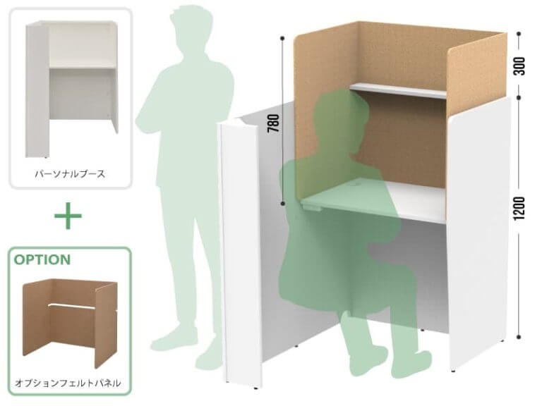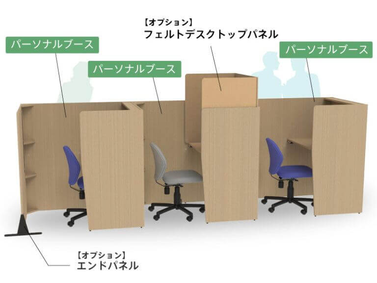 パーソナルブースの複数レイアウトは位置を揃えて並べる置き式。後からでも手軽にブースを追加できます。 |