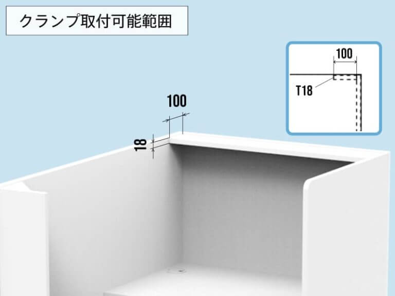 パーソナルブースは、机上の貫板部分に市販のクランプ固定式デスクライトやクリップライト等の設置が可能です。 |