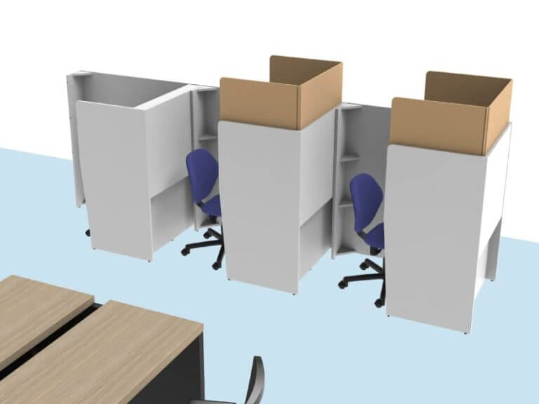 学習塾の自習室や有料自習室の個別ブースにも最適です。仕切りパネルが低めに設定されているため空間全体の印象も圧迫感なくレイアウトできます。 |