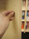 可動棚板でムダなく収納できるシンプルなハイシェルフ。付属の棚板4枚のうち上から2段目の1枚のみ固定棚、その他3枚は可動棚です。棚板取付け用ダボ穴のピッチは32mmです。オプション棚板(別売)を追加してご利用頂けます。