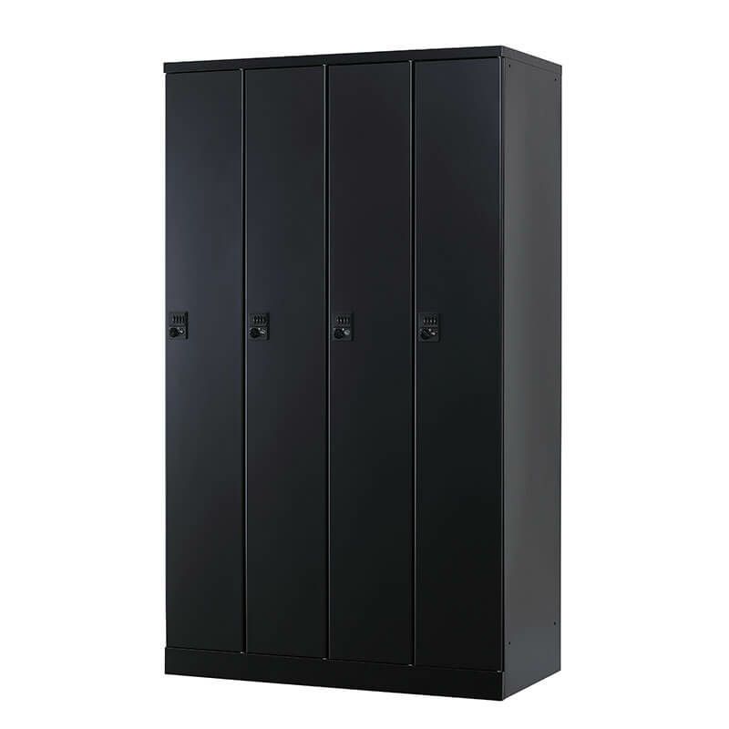 着替えるだけでなく小物・かばん・靴の収納にこだわった更衣用ロッカー。必要収納スペースに合わせハンガーパイプ位置の高さを2段階調整できます。棚は可動棚で、スペースを有効利用いただけるように高さを2段階調整できます。キーは、お好みの4桁の番号で施解錠するキーレスタイプのダイヤル錠です。扉が閉まった状態を保持できる留め具(キャッチ)付。