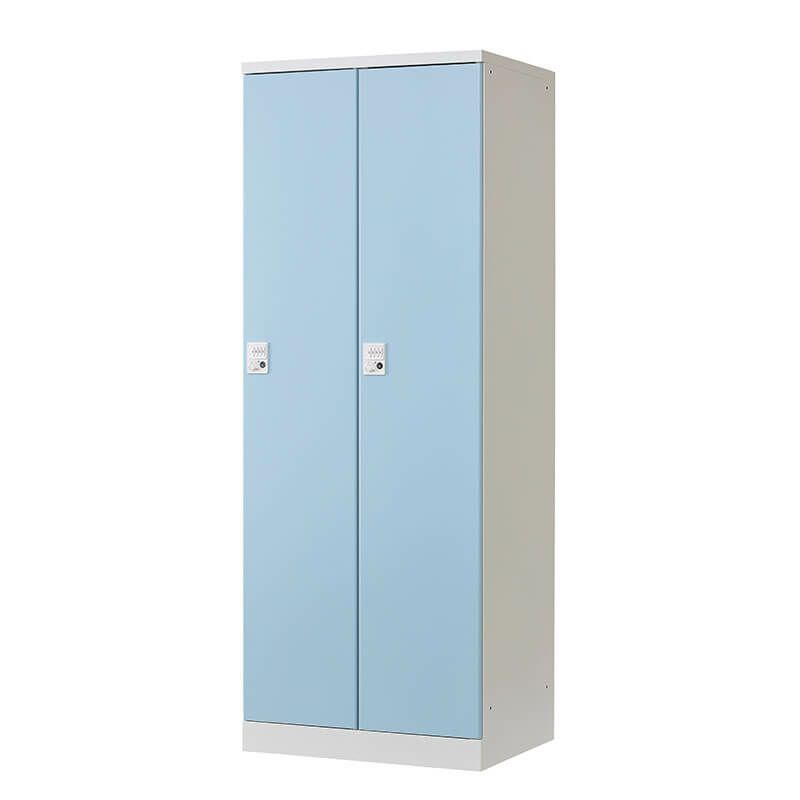 着替えるだけでなく小物・かばん・靴の収納にこだわった更衣用ロッカー。必要収納スペースに合わせハンガーパイプ位置の高さを2段階調整できます。棚は可動棚で、スペースを有効利用いただけるように高さを2段階調整できます。キーは、お好みの4桁の番号で施解錠するキーレスタイプのダイヤル錠です。扉が閉まった状態を保持できる留め具(キャッチ)付。