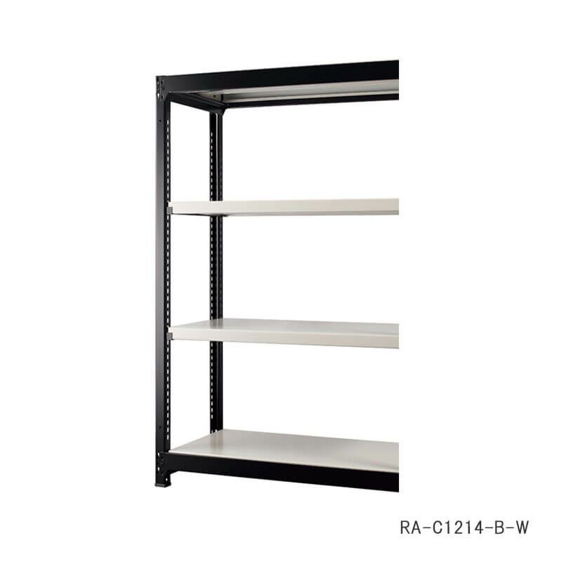 デザインにこだわったスチールラック増連セット。オールスチール製で1段あたり耐荷重200Kg(等分布)ボルトレスにより組立・分解も簡単。片側の支柱を利用し増連が可能。安全に配慮したコーナーキャップ付き。支柱2本・棚板4枚。