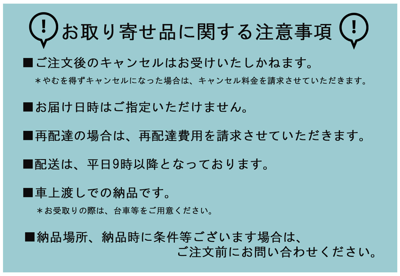 取り寄せ品 配送に関する注意事項