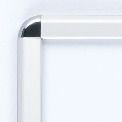 シンプルなアルミ枠のスナップフレーム。コーナーが光沢仕上げで高級感があります。フロントオープンで中身の出し入れが簡単です。4辺のフレームを外側にひねって開き、透明カバーの下にポスター等の掲示物を入れてください。裏面には、紐をかけるための金具と、ビス等で直接壁にかける場合の穴がそれぞれ縦横各2箇所にあります。掲示用の紐が付属しています。壁面用のビスは付属していません。適合用紙サイズ:A1(W841*H594mm)