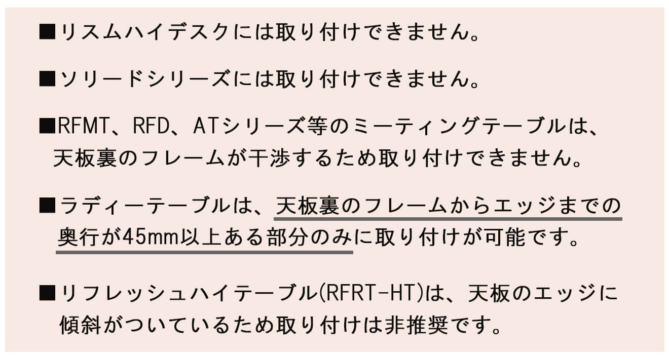 *リスムデスク(ハイデスクには取り付け不可)