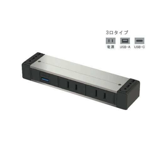 3口タイプ(電源&USB-A&USB-C)シルバー