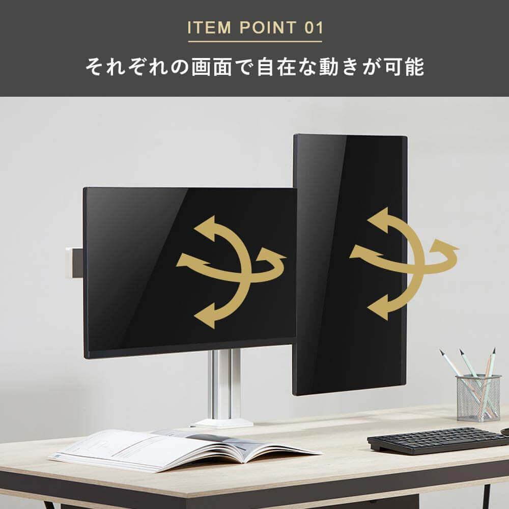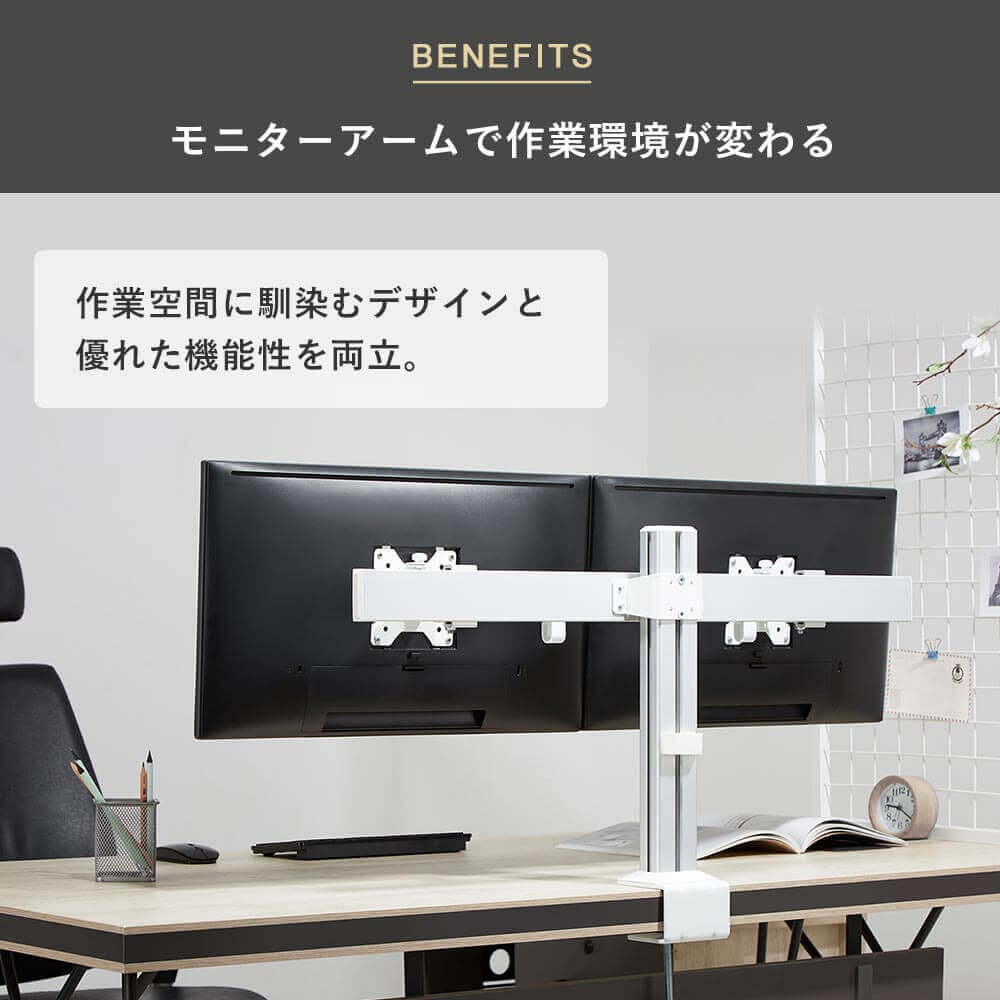 デザイン・質感にこだわるスタイリッシュな2台対応モニターアーム